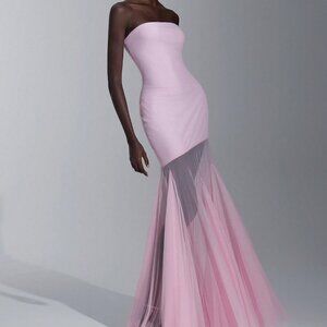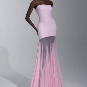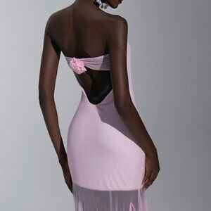 Pink Party Women's Elegant Bodycon Strapless maxi Mesh hem Dress
