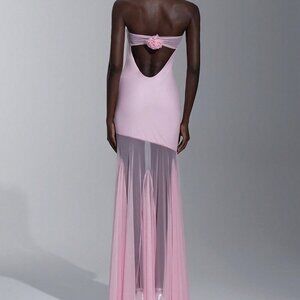 Pink Party Women's Elegant Bodycon Strapless maxi Mesh hem Dress