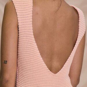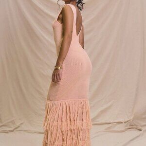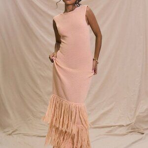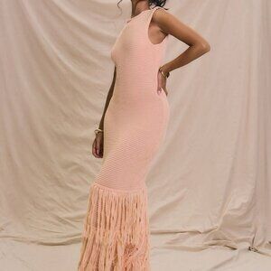 Pink Party Women's Sleeveless Ribbed Maxi Sweater Dress with Frill Fray Hem