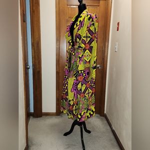 Hand crafted, Pink Patch Duster with pockets and tie belt. Full Length Fits Most, Max 3XL