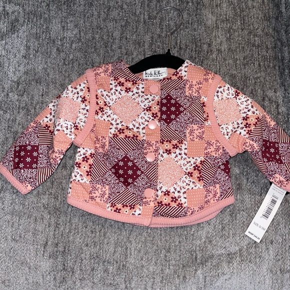 Stylish pink patchwork jacket with button details. Perfect for a chic look. Perfect for spring. Nicole Miller size 0-3