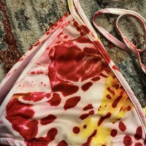 Stylish and vibrant pink patterned bikini top perfect for a day at the beach. Enjoy comfort and style with this eye-catching swimwear piece. Never been worn (I ordered wrong size and couldn’t return)