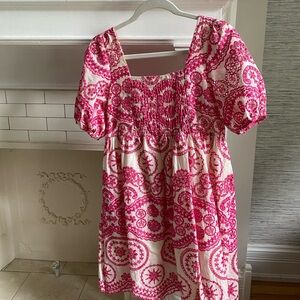 Adorable pink patterned kids dress perfect for any occasion. Comfortable and stylish, this dress is a must-have for your child's wardrobe.