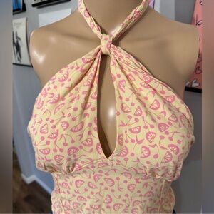 Stylish pink patterned halter top perfect for any occasion. Features a unique design for a standout look. Halter tie top with a zip in the back. Printed with sweet fruits. Perfect for ice cream date, biking day, vacation. Make your choice with your purchase. Any questions just ask!