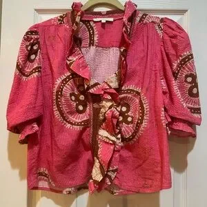 Vibrant pink jacket with unique patterns. Perfect for a bold look. Such a cute top!!! Like new