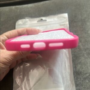 Stylish pink phone case with a vibrant pattern. Perfect for adding a pop of color to your device.