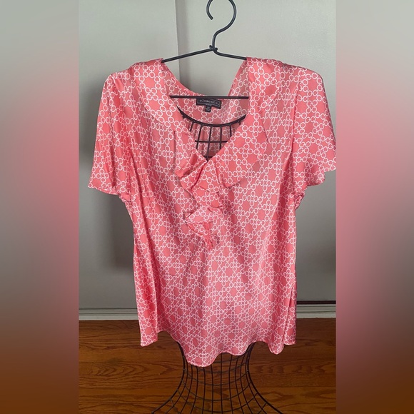 Elevate your wardrobe with this stylish pink patterned top. Perfect for any occasion, this top offers both comfort and elegance. Pit to pit 20”, length 26”