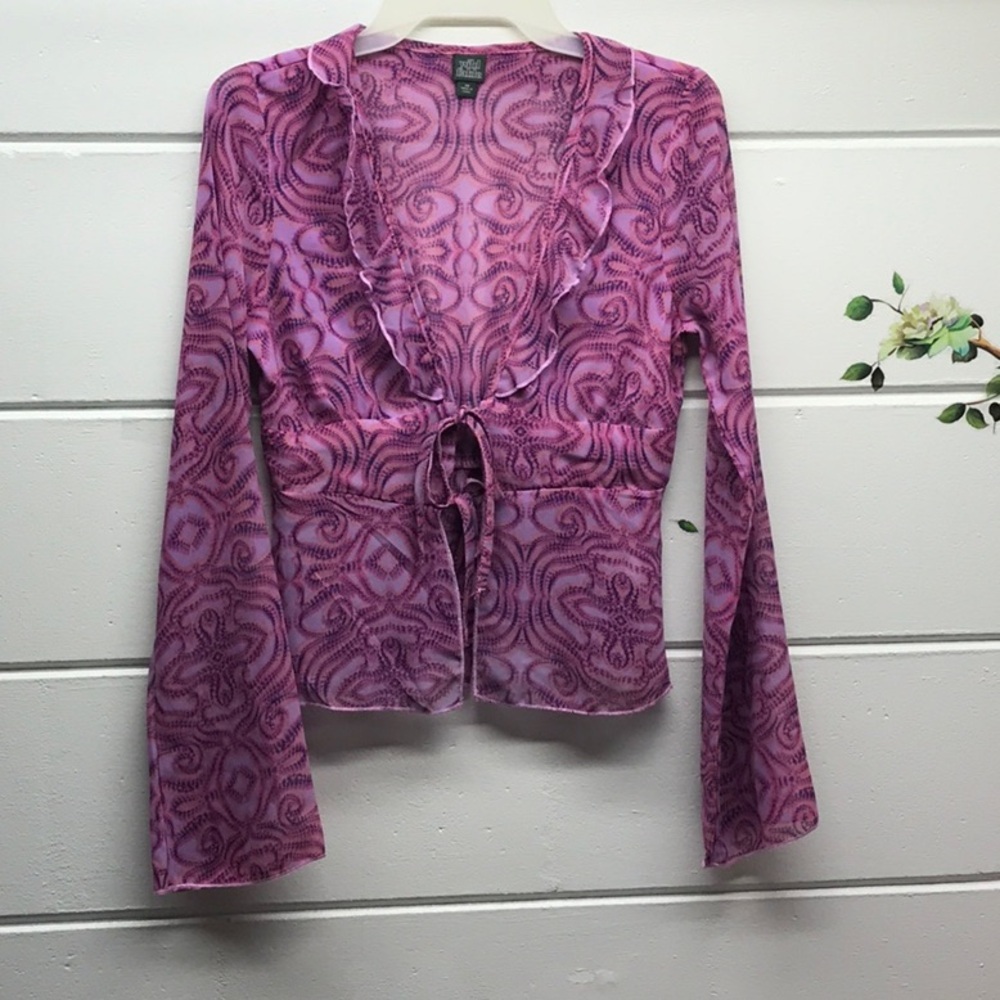 Stylish pink patterned top with a unique design. Perfect for adding a pop of color to your wardrobe.