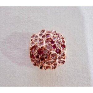 Pink Pav Daisy Flower Charm - 14k rose gold - Fits Pandora Charm Bracelets