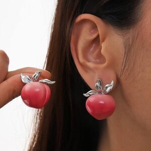 Charming pink peach earrings with silver accents. Perfect for adding a playful touch to any outfit.