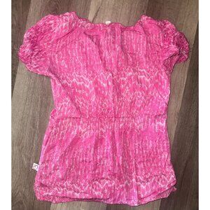 Pink Peaches Uniforms Floral Short Sleeve Blouse S