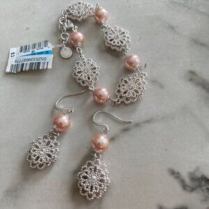 Pink Pearl 20" Necklace with Matching Bracelet and Earrings