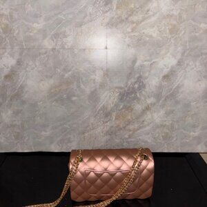 A boutique favorite! Pink Pearl-Crossbody Purse, jelly purse. The gold crossbody chain and be doubled or worn single across the body.