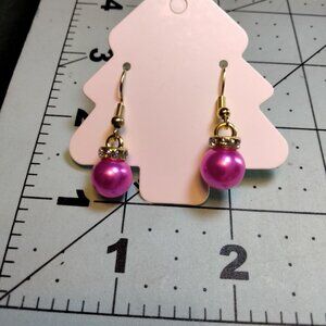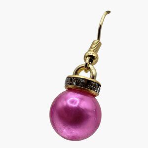 Pink Pearl Gold Hook Earrings Rhinestone Accent Christmas Ornament