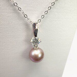 Pink Pearl & Moissanite Necklace 925 Sterling Silver Elegant Jewelry