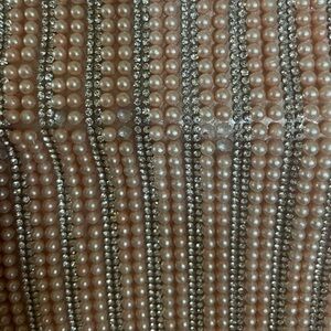 Used twice, minor flaw - a few pink pearls fell off the back (pictured).