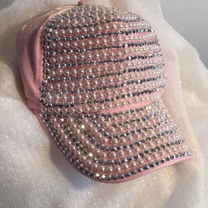 Pink Pearl and Rhinestone Cap