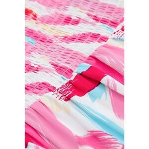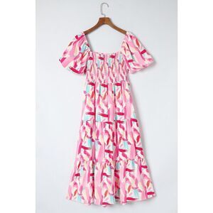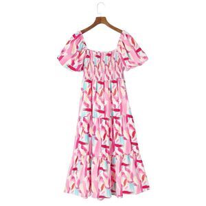 Step into the season with a burst of color and a touch of bohemian charm in this Pink Peasant Square Neck Tied Smocked Midi Flare Dress. Perfect for a range of occasions from a sunny day at the beach to a casual work setting, this versatile piece showcases a lively floral pattern that captures the essence of spring and summer.