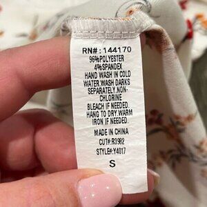 Pink Peony Womens Floral Crop Blouse Cut Out Tie Back Crewneck White Size Small