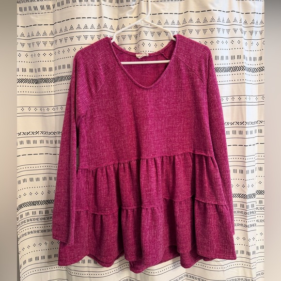 Chic magenta blouse with tiered design. Perfect for versatile styling.