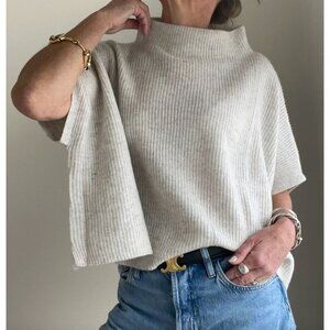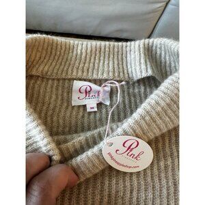 Pink Pineapple NWT Crop Cashmere Topper, 100% Cashmere Mockneck Poncho Beige Medium Cozycore. No flaws!! *STOCK PHOTOS LOOK MORE GREY, SEE MY PHOTOS FOR EXACT BEIGE COLOR*