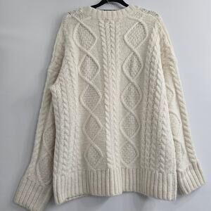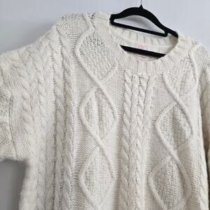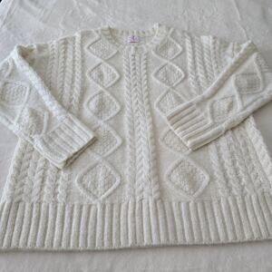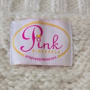 Pink Pineapple Sweater Ivory Cable Knit Pullover Sz M Cozy Winter Minimalist