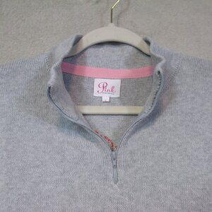 Pink Pineapple Womens Cotton Long Sleeve 1/4 Zippered Sweater Gray Size Large