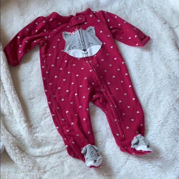 Pink raccoon zip up pjs with silver hearts