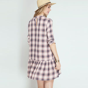 Pink Plaid Flannel Dropwaist Tunic Shift Dress