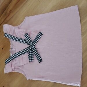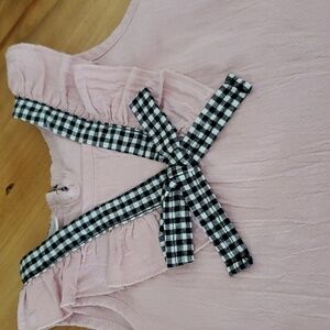 This super cute girls outfit features a beautiful sleeveless ruffled linen top in a soft pink color. The top has intricate ruffle detailing along the neckline and paired with plaid shorts that feature a mix white and black colors in a fun and playful pattern. This set is perfect for any occasion, from playtime to outings with family and friends. Your little girl will look stylish and cute in this adorable outfit.