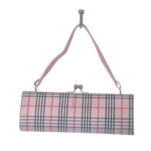 Pink Plaid Shoulder Mini Bag with Clasp Closure Oblong Preppy Twee Y2K