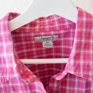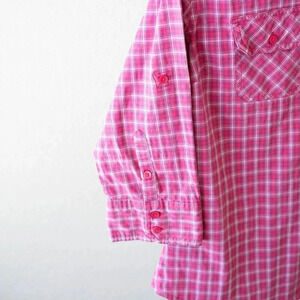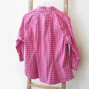 Stylish pink plaid top perfect for casual outings. Features a classic collar and button-down front. Ideal for layering or wearing on its own.