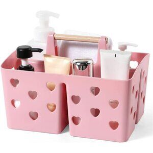 Pink Plastic Shower Caddy Tote Organizer with Handle Dorm Bathroom Storage Bin