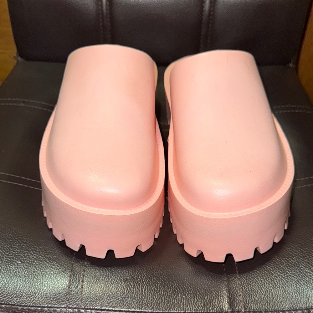 Trendy pink platform clogs with a chunky sole. Perfect for a bold fashion statement. Brand New. Never Been Worn