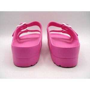 Pink Platform Two Strap Sandals Buckle Slides Beach Slippers Size 8 EUR 39 Barbi
