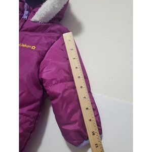 Keep your little one cozy this winter with this Pink Platinum one-piece snowsuit. Made from 100% polyester, this solid maroon/purple snowsuit features long sleeves, a full zip closure, and pockets. It is machine washable and water-resistant, making it perfect for outdoor activities.