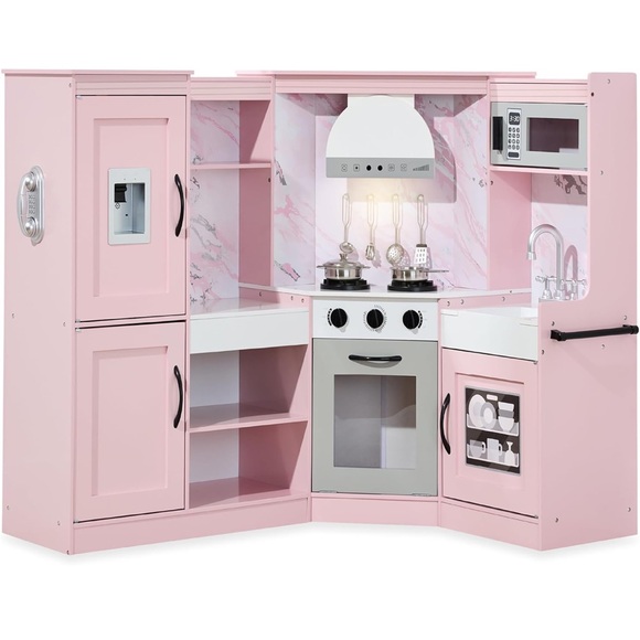 Delight your little chef with this charming pink play kitchen set. Perfect for imaginative play, it features realistic details and a stylish design.