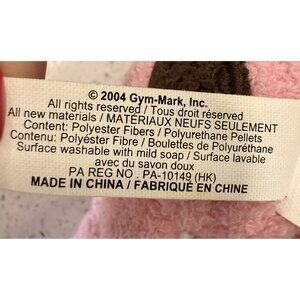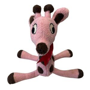 This plush giraffe from Gymboree features a charming pink color accented by brown spots, a bow, and a soft, cuddly texture. Standing at 11 inches, it is perfect for children or collectors. Made with polyester fibers and polyurethane pellets, it provides durability and softness for play or display.
