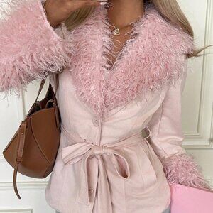 This plush suede jacket features a fur collar and is designed for women. It has a loose fit, long sleeves, and a single-breasted style, making it perfect for late fall. The regular length and plain pattern ensure a versatile look. • 100% Polyester • Loose • True-To-Size Closet Sizing Chart (Size Tags Are In Letters): XS - 0 S - 2/4 M - 6 L - 8/10 XL - 12 1X - 14 2X - 16 3X - 18 4X - 20 Ships In 7-10 Days shopping for these styles? summer Spring Boho picnic hippie 60’s 70’ festival soft- girl 90s y2k butterfly blouse holiday party dressing chunky crochet maximalist core beachy Resort wedding guest bridesmaid date night Sexy modest contemporary layer classic trendy layered office preppy cruise Bohemian vintage flirty thanksgiving chic maxi coverup beach tropical vacation coachella dress skirt floral midi western classy winter fall birthday gift girly minimalist 00s engagement bachelorette travel aesthetic vibe retro casual dressy valentines Light baddie color - block tiktok business professional workplace wear pants blazer Christmas prom work formal gown ball pastel goth prairie instabaddiecore cottagecore