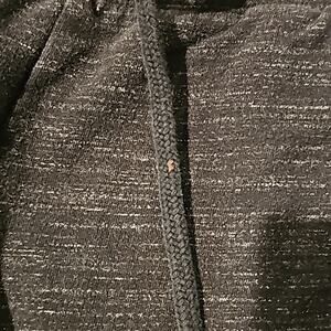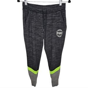Preowned and in good condition, no tears or holes found. Stain found on Right pant leg above stripe. Please see the last picture for the black stain. Also found a small bleach stain on the left drawstring.