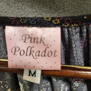 Pink Polkadot Boho Dress Womens Medium Peasant Long Bell Sleeve Tunic Dress