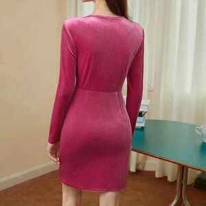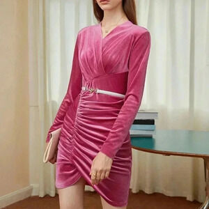 Pink Preppy Womens Ruched Front Velvet Bodycon Dress Without Belt