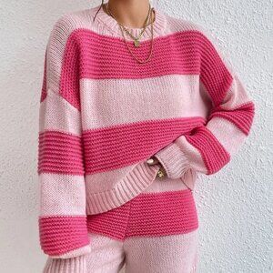 Pink Preppy Womens Two Tone Drop Shoulder Sweater & Knit Shorts