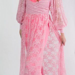 Pretty pink princess dress all lace sheer, see-through, except for lining around chest and upper back. Stretchy elastic.