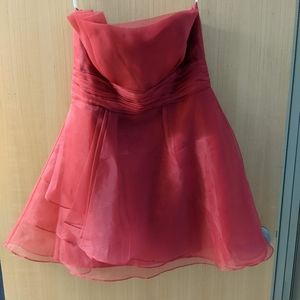 Short, bright pink prom or party dress with whimsical folds and layers of semi-sheer pink fabric. Size 14!