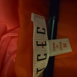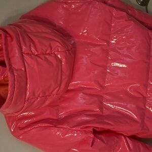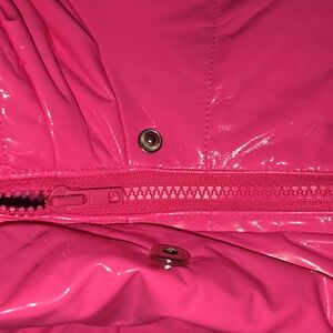 Keep warm and stylish with this vibrant pink puffer jacket. it has zipper and snap buttons and comes with a hood to keep your head warm as well. Perfect for chilly days.