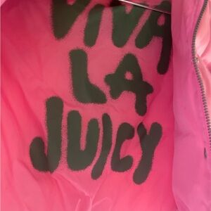 Juicy Brand pink puffer jacket with snap buttons and zipper pockets. Perfect for staying warm and fashionable. Fits Medium/Lrg runs small.