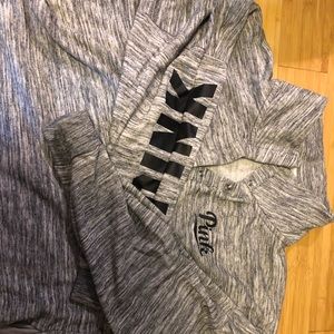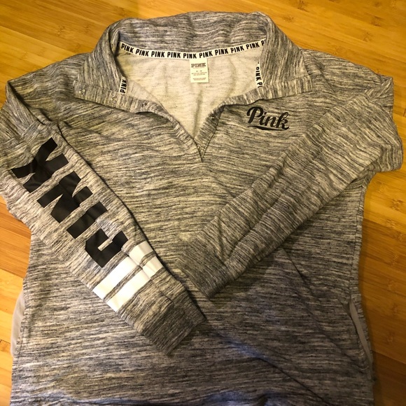 A Victoria secret pink pullover that is gently used! Perfect for lounging around the house. It has a snap neck front and side pockets!