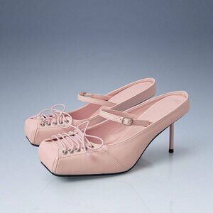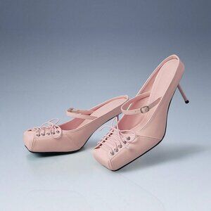 Pink Punk Women's Lace-Up Square Toe High Heel Pumps