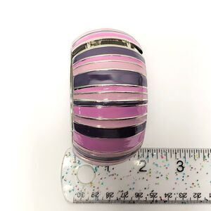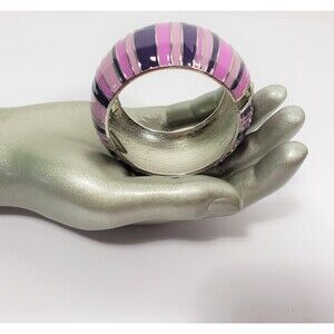 Pink Purple 1.5" Wide Clamper Bracelet Silver Tone Metal Chunky Domed Striped